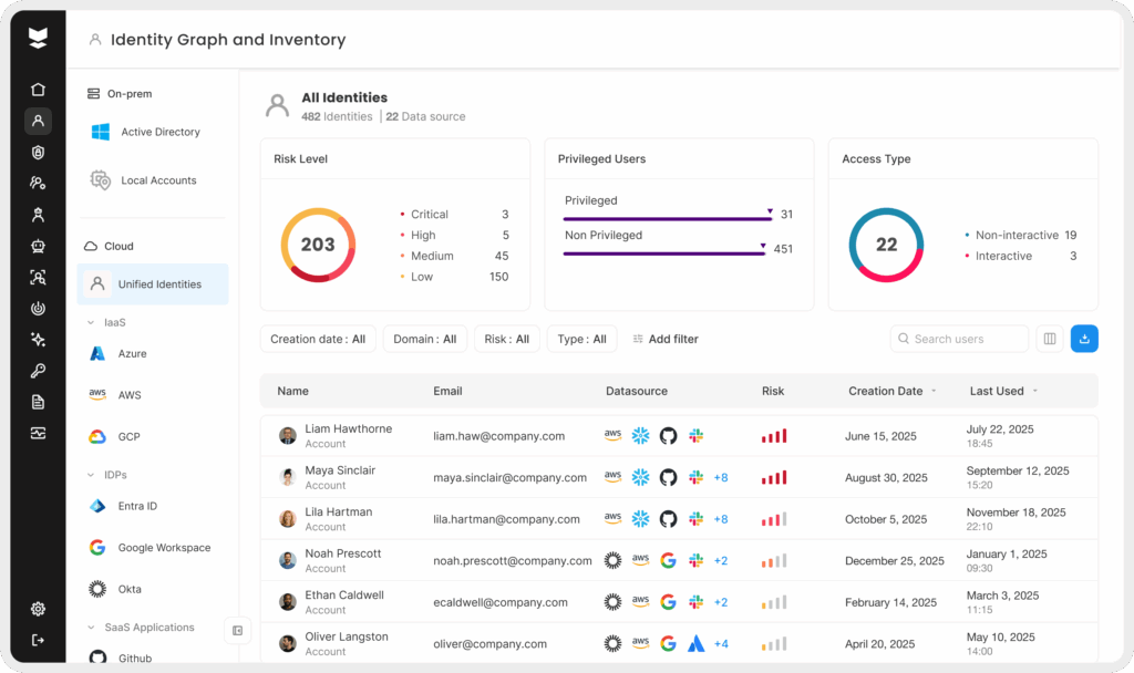 A strong method to audit hygiene is to ensure continuous visibility into all accounts (human and non-human) and their usage. Being able to automatically discover accounts in your environment – including service accounts and unused logins – and flag those that have been inactive for a long period as “stale users” helps make sure you have an ongoing inventory of the identities that exist. Security teams can then swiftly review and either remove these accounts or apply policies to block any access attempts using them.