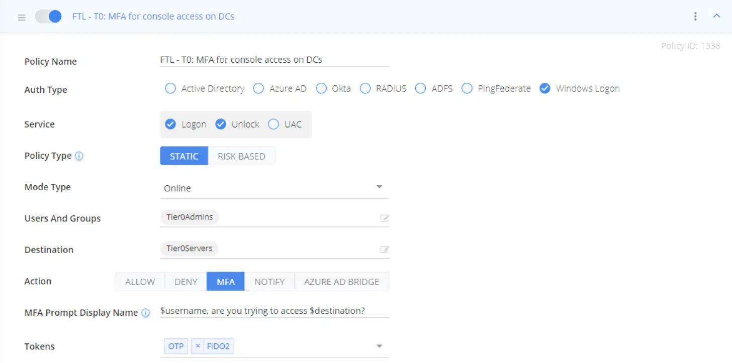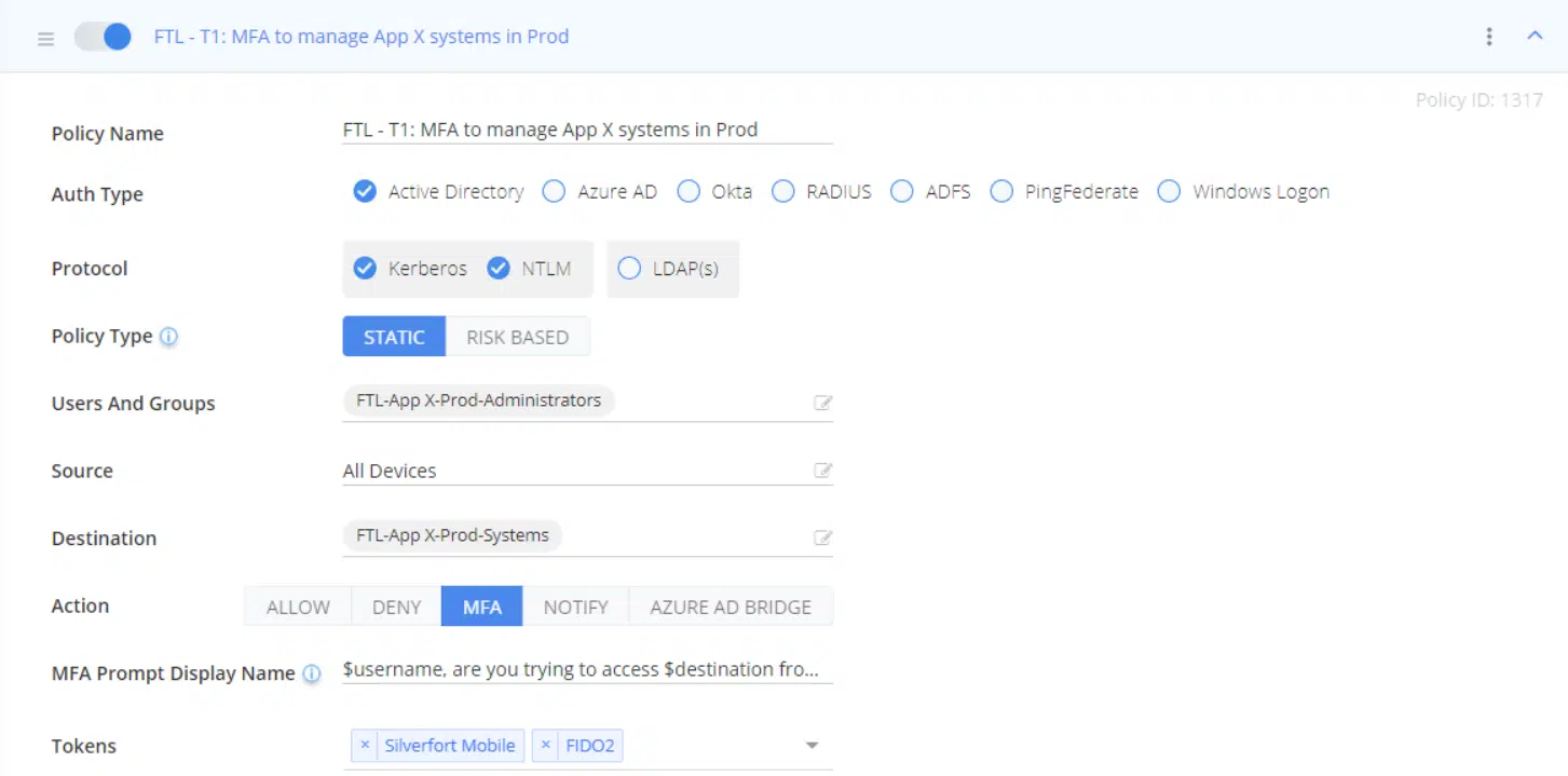 Access with privileged accounts in any Tier can be protected with appropriate MFA methods. For example, remote administration of « Application X in PROD » by Tier 1 application administrators for this perimeter can be protected with FIDO2 and/or Silverfort mobile Push MFA if there are no dedicated third-party MFA available for the Tier 1 accounts.
