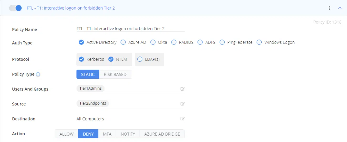 Here are some example Silverfort authentication policies that can help with the implementation of an AD Tiering model: