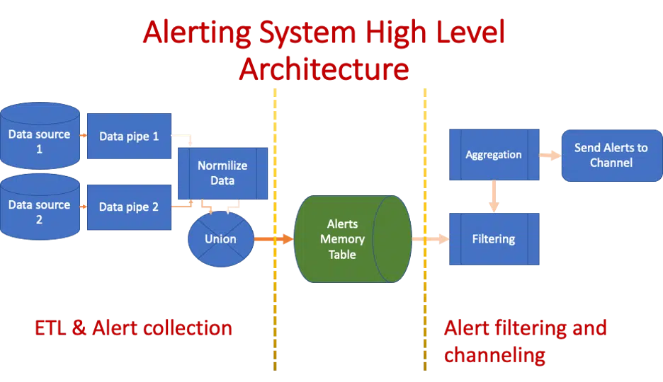 We wanted some alerts to be triggered only when certain conditions were met. But some needed to be combined with data from other tables and sources, so join and aggregation operations were needed.