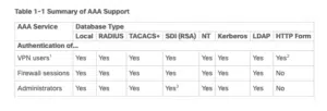 We went ahead and tried the same for other Cisco interfaces and saw the same vulnerability exists when opening firewall sessions, administrative authentication and even when using SSH to access the VM. See below the Kerberos column in the table summarizing Cisco support for different authentication protocols.