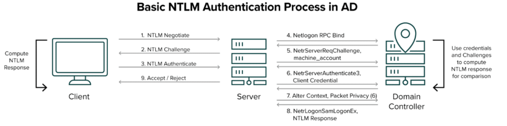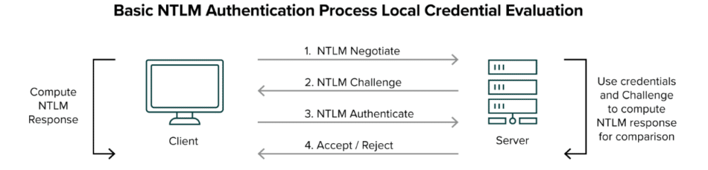 - Challenge – The server responds with a random number (the challenge) that must be encrypted using the user’s credentials.
