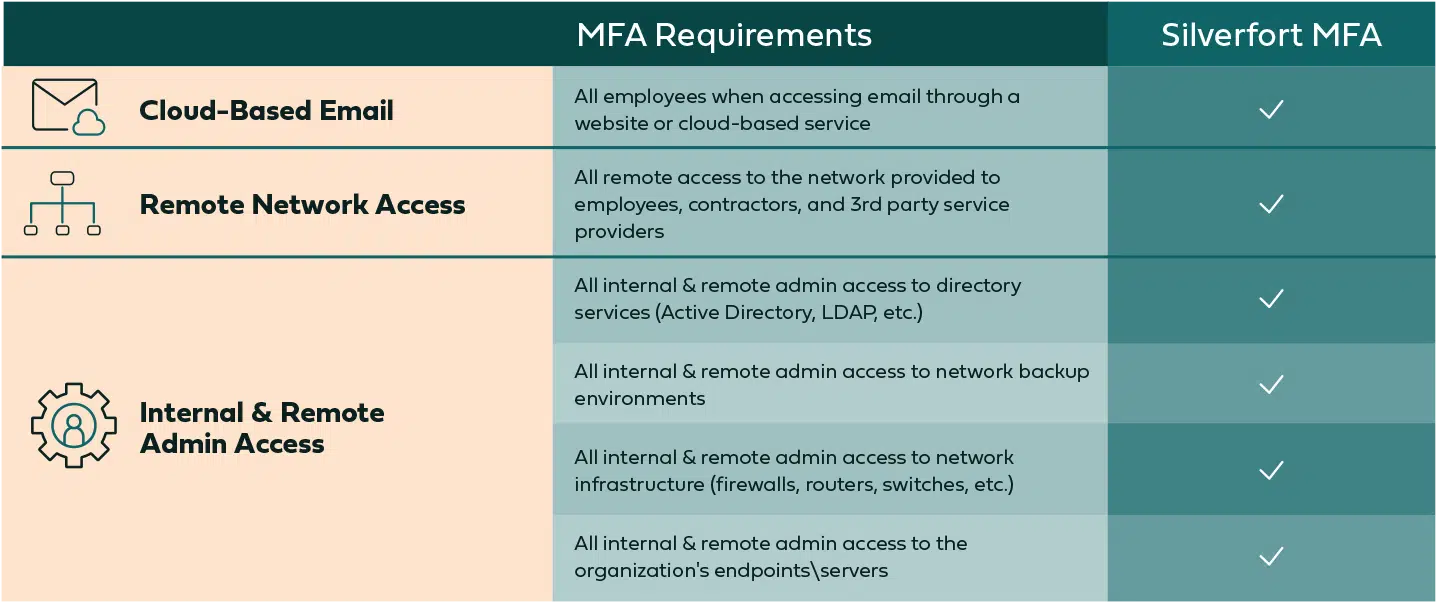 Here is where complying with the requirements becomes more complicated. While standard MFA solutions can cover some of these use cases, none can cover all of them. Let’s explore each of these sub-requirements: