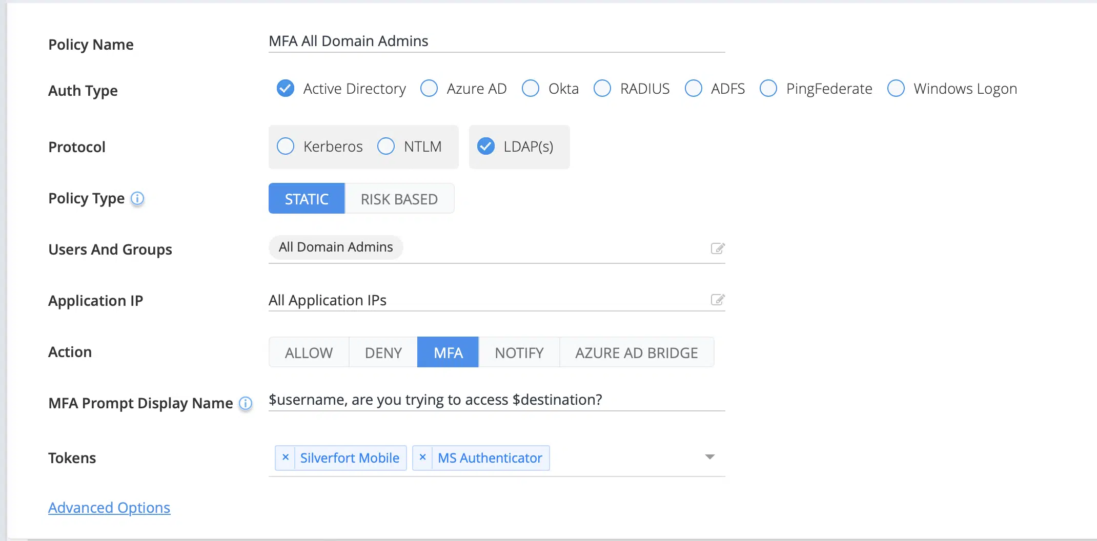 Silverfort’s MFA access policy requires domain admins to authenticate their identity when requesting resource access