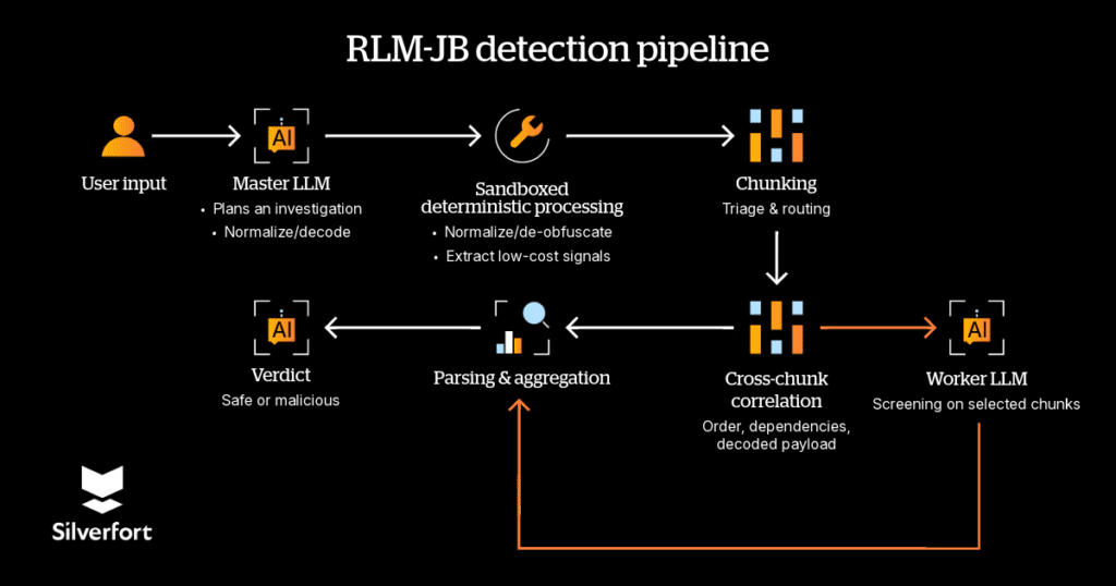 RLM-JB está diseñado para esa realidad. Refuerza la cobertura de entradas largas mediante fragmentación, reduce la evasión mediante la normalización, asigna cómputo mediante triaje y reconstruye ataques compuestos mediante correlación entre fragmentos.