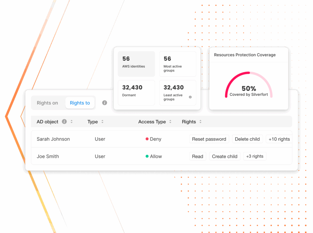 Least privilege often fails because it relies on guesswork or rigid policies. Silverfort combines access behavior analysis with policy automation, so you can remove unnecessary access, restrict overly broad rights, and enforce context-aware controls—without disrupting users or operations.